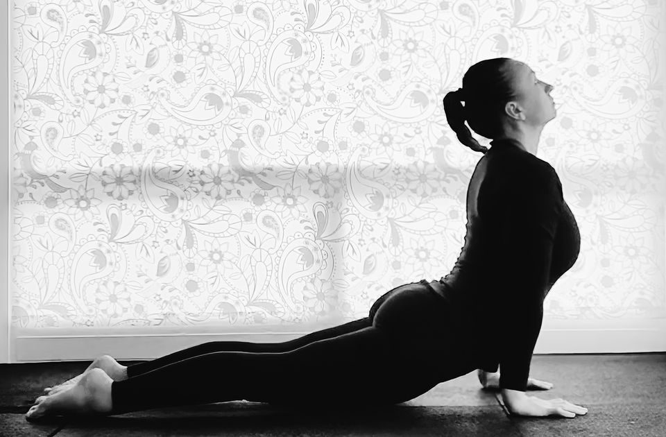 Pócsi Angéla vinyasa flow jóga privát teremben – Életfa Test és Lélek Műhely